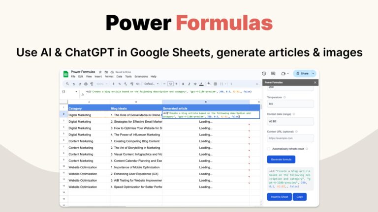 Power Formulas is a game-changing Google Sheets add-on that integrates AI for seamless content and image creation, enhancing productivity for marketers and data enthusiasts alike.